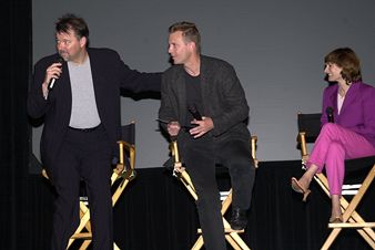| Michael joined by superstar producer GALE ANN HURD on hand to promote CLOCKSTOPPERS their new flick directed by Jonathan Frakes | ||