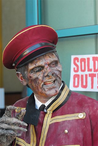 THE DEAD DOORMAN, Fangoria's Weekend of Horrors own horrible host, was seen haunting the doorways throughout the venue, offering "the door" to unsuspecting victims |