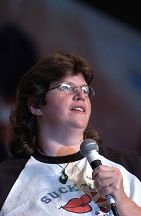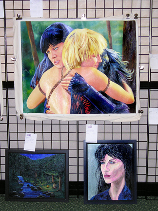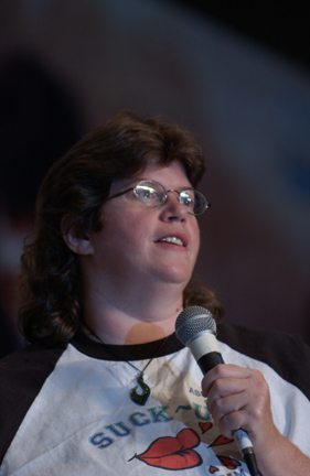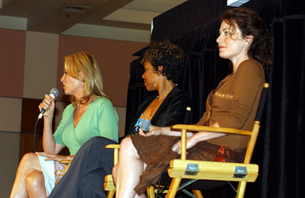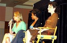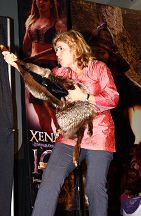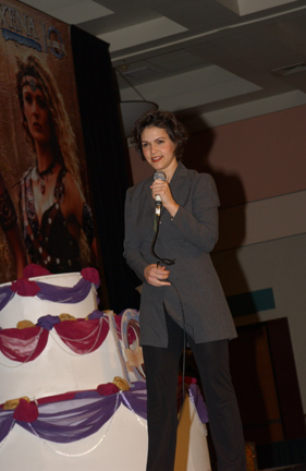 While perfection is a goal that is stated as unattainable, for us the perfect convention weekend was the 2005 Annual Official Xena Convention. Truly one for the ages! A glorious time was had by all and love was surely in the air as fans from the far corners of the world came together to celebrate the 10th Anniversary of the series that changed the face of television forever. To state the obvious, Xena fans are blessed with two superstars that are simply the most outrageously talented ladies around! Just check out these photos: have any series stars ever "brought their game" to a convention like Lucy and Renee? From Lucy suggesting a 10th Anniversary cake entrance (ever try to find a giant prop cake in less than a day?) to Renee notching up photo ops to a whole new level by posing with everyone in her costume wedding gown.. to that hot disco song that Lucy sang on entering... and Renee's dancing: well, we're still recovering from that number. No wonder the fire alarm went off! And while L&R certainly took the cake (no pun intended) there was so much more to cherish and remember. Every guest was sensational, but we must give some special shout-outs: - Rob Tapert and Chris Manheim for an absolutely way too short presentation that gave us all a rare look inside the production of the series and the camaraderie that existed in the writing room - To "the man" Steve Sears for writing the incredible XENA PUPPET SHOW: what a performance the puppeteers gave and an immediate huge standing ovation was their reward! It was perfect and quite a surprise! - To Alexis Arquette for the winning turn during the cabaret and to Alison Wall for a beautiful performance piece! We love raising the bar for convention entertainment and you guys really flew! - To Hudson Leick: for never letting her audience down and bringing her singular personality to our stages yet again! - To fantastic writer and inspiration Katherine Fugate for updating us on the feature film we are hoping for! - To Ted Raimi for bringing the convention to a close with a rousing comedic presentation "Ted" style! - And to everyone else for your contributions in making this the best one yet: Meghan, Sheeri, Tsianina, Missy, Jennifer, Gillian, David, Bruce, Danielle, Paris & Gary Jones! Creation's special thanks to our own Sharon Delaney for the spectacular MC job: the perfect mix of good questions and audience interaction with our guests Well over $30,000 was raised for charity during the convention, continuing in the unprecedented dedication to "the greater good" that has made Xena fandom the most generous of all! Visit our e-mail section for fan reviews of the event by linking HERE! |