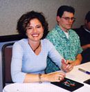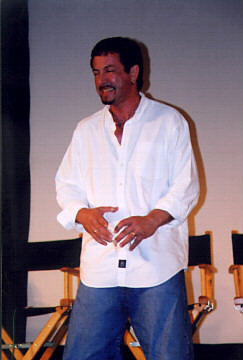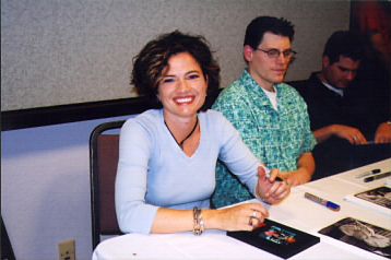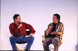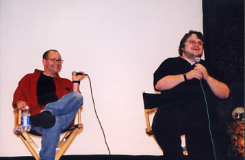 "Hellboy" is the comic character created by MIKE MIGNOLA (left), who has been a comic fan favorite for years. Now the character is being brought to the big screen with a big budget film to be directed by GUILLERMO DEL TORO, the masterful talent behind films like "Blade 2". Both spoke to a packed house and signed autographs for hours.