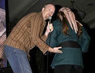 Anthony mixing it up on stage with a costumed audience member