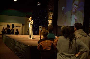 the projection system screen was a necessity for those in the back areas! |