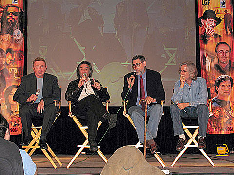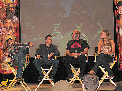(left to right) LARRY COHEN, JOE DANTE, JOHN LANDIS and MICK GARRIS are truly The Masters of Horror, and they were on hand to talk about the incredible new Showtime horror anthology series. Mick also gave a sneak preview of the latest Steven King opus he has adapted, Desperation. (left to right) ROB ZOMBIE, BILL MOSELEY, SID HAIG and SHERI MOON ZOMBIE were huge hits with the crowd, there to talk about Rob's latest monsterpiece The Devil's Rejects, his shocking follow up to House of 1000 Corpses. ROB ZOMBIE is an international superstar, juggling careers in music, as a radio host, film maker and writer. And what a cool guy!