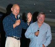 PATRICK STEWART: For many, seeing Patrick live was a dream that we needed to fulfill. He has such a command about him it is no wonder he was cast as Captain Picard! He flew down from filming X-MEN 3 (we can't wait!) to be with his fans: such a generous gesture and Patrick even signed autographs for the first time in the US! PARTIES are a given at the Las Vegas convention and we always try to have as much personal contact between our celebrity guests and fans as possible. Here DEAN HAGLUND (of The X-Files) and CHASE MASTERSON hang with a fan at the big bash at Star Trek: The Experience