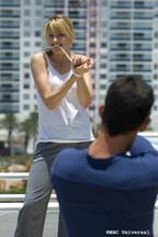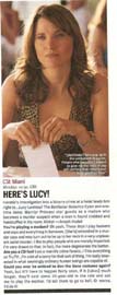 Lucy recorded a videoclip about working on Burn Notice (airing Sept. 13 onthe USA Channel).  Thanks to Lucy for the clip and NBC Universal for the publicity photos.  Click center image for QT of video.
