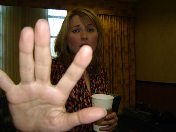 Folks have been asking if Renee was in/remembered a couple films that recently showed up.  So I put it to Renee.  She doesn't remember being in a movie called The Birth of Language directed by Paul Jay although a Renee O'Connor is listed in the credits.  She also doesn't remember filming the Randall's warehouse informercial although she was definitely in that.  She looked at the youtube video and exclaimed, "Scary!"  Not sure if she was talking about her acting or the fact that such a piece of work has surfaced on the web.  <G>