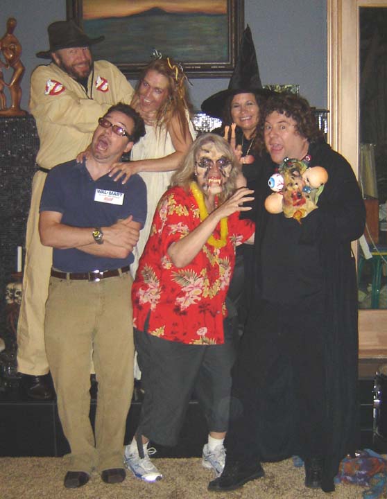 Monster Ark viewing party Saturday night.  We were all supposed to be monsters or monster slayers.  Some of the Xena crew were there and we gathered together for a family photo.