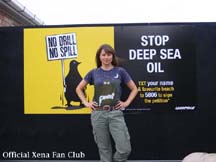 Lucy's speaking out against deep sea drilling off the coast of New Zealand.  Everyone join in and sign the Greenpeace petition to the NZ government.  Lucy says, "I'd urge anyone who wants to protect our coasts from an even worse oil spill than that which we saw in Tauranga to sign this petition.  By doing so, they'll also be doing something positive about the climate crisis that this planet is facing."  We here in the U.S. know what oil spills can do!