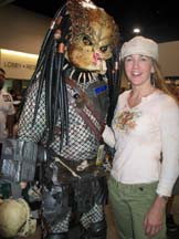 Renee visited her "Heart Of Darkness" for this weekend's photo ops.  The funniest bit was when she discovered the ties to the top of the costume were braided leather.  She decided they made great whips and many of the fans were treated to a thwap from Renee when they came up to her.  She's such a goof.  I'm in my local Starbucks here on Long Island.  Hope no one is looking over my shoulder at my photo of Renee.  Not sure suburbia is ready for Renee O'Connor in her temptress attire!