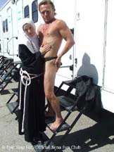 in BITCH SLAP, alongside the gorgeous, Renee O'Connor, who is a naughty novice in the convent.  She is confessing her dark fantasies to my character -- just as she does in real life.  Ha-ha, not really.  (Yes, really.)  BITCH SLAP is an epic exploitation movie written and produced by Herc/Xena producer, Eric Gruendemann and directed by Rick Jacobson, (one of my all-time fave directors on Xena).  It also stars Michael Hurst; stunt co-ordinator, Zoe Bell.  Kevin Sorbo also makes an appearance.  So it was a terrific reunion for us all.  Renee and I were spectacular.  Just don't blink.