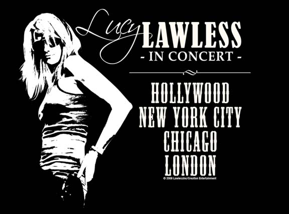 Official Xena Fan Club Yahoo Group These messages, photos and videos are exclusive to this website. Please do not repost to any other website. Link to the page to send people to see them. LUCY LAWLESS LIVE AT THE ROXY JANUARY 2008 Here's the clip the Renee fans have been waiting for. Her duet with Lucy on "Stop Dragging My Heart Around" at Lucy's Roxy concert. Instead of dancing, as she did at the other concerts, Lucy and Renee thought it would be fun if she sang along. And then there's the item that was thrown onstage from the audience. Hey, it's a Tom Jones concert! ![]() (click image for QTversion)(wmv version) Here's Lucy's Roxy concert shirt. ![]() Lucy changed outfits the second night at the Roxy. Did I mention Lucy changed outfits the second night at the Roxy! Check out this second clip as Lucy goes "Walking After Midnight" with Patsy Cline. And don't forget to check out Lucy's website for another Roxy clip, "Heartache Tonight." ![]() (click image for QTversion)(wmv version) Lucy's got a mischievous streak and I thought I'd give you a peek at it in action. And check out another clip on Lucy's website. ![]() (click image for QTversion)(wmv version) Here's the fourth clip from the rehearsal sessions with Michael. (The other two are on Lucy's website.) This is a 20s sounding ditty by Dan Hicks and the Hot Licks called, "Sweetheart."